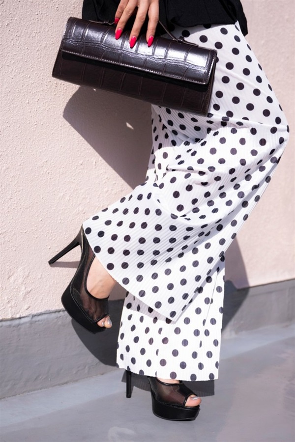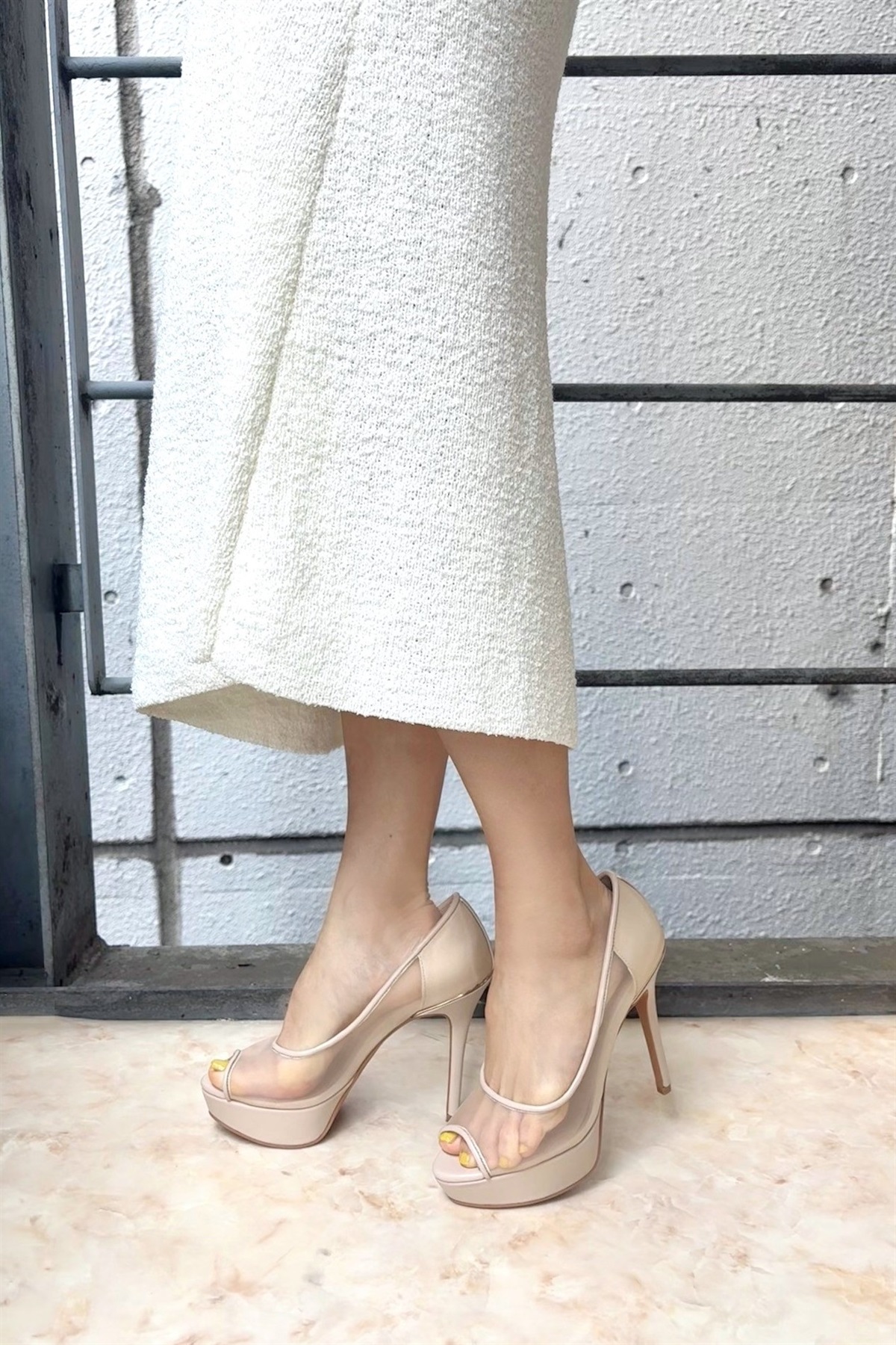 スラリと伸びたピンヒールはエレガントな立ち姿をアシスト。