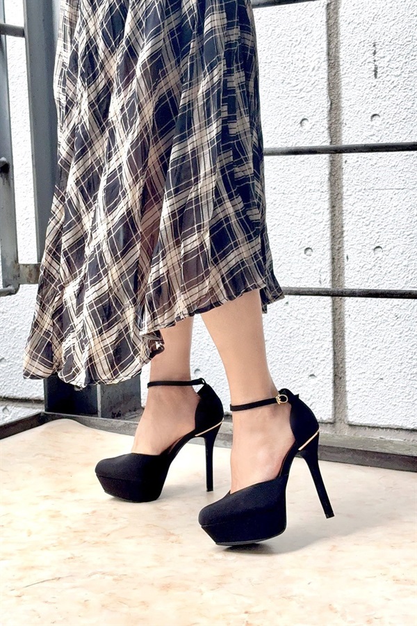 華奢なアンクルストラップとサイドの抜け感がバランス良く、美脚効果・大!