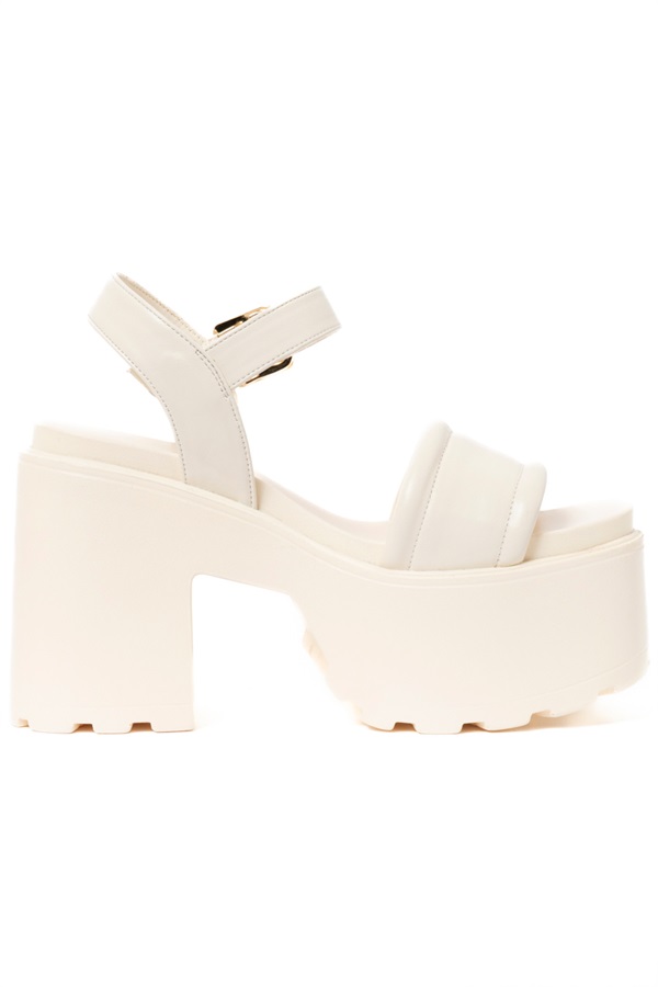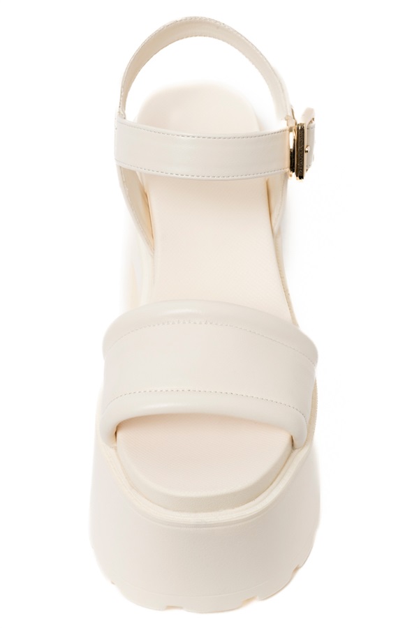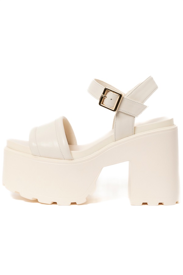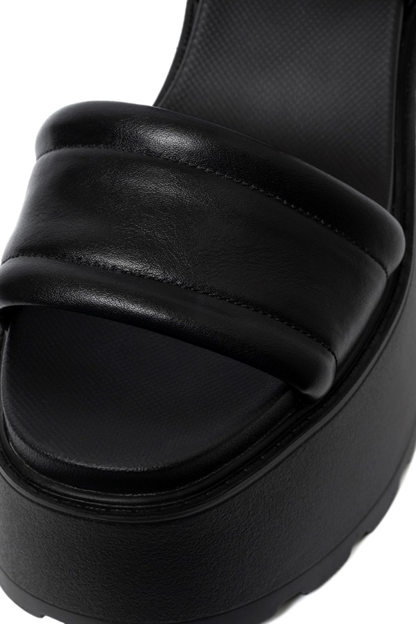 シンプルデザインながら、ボリューミーな厚底が存在感を放つサンダル。