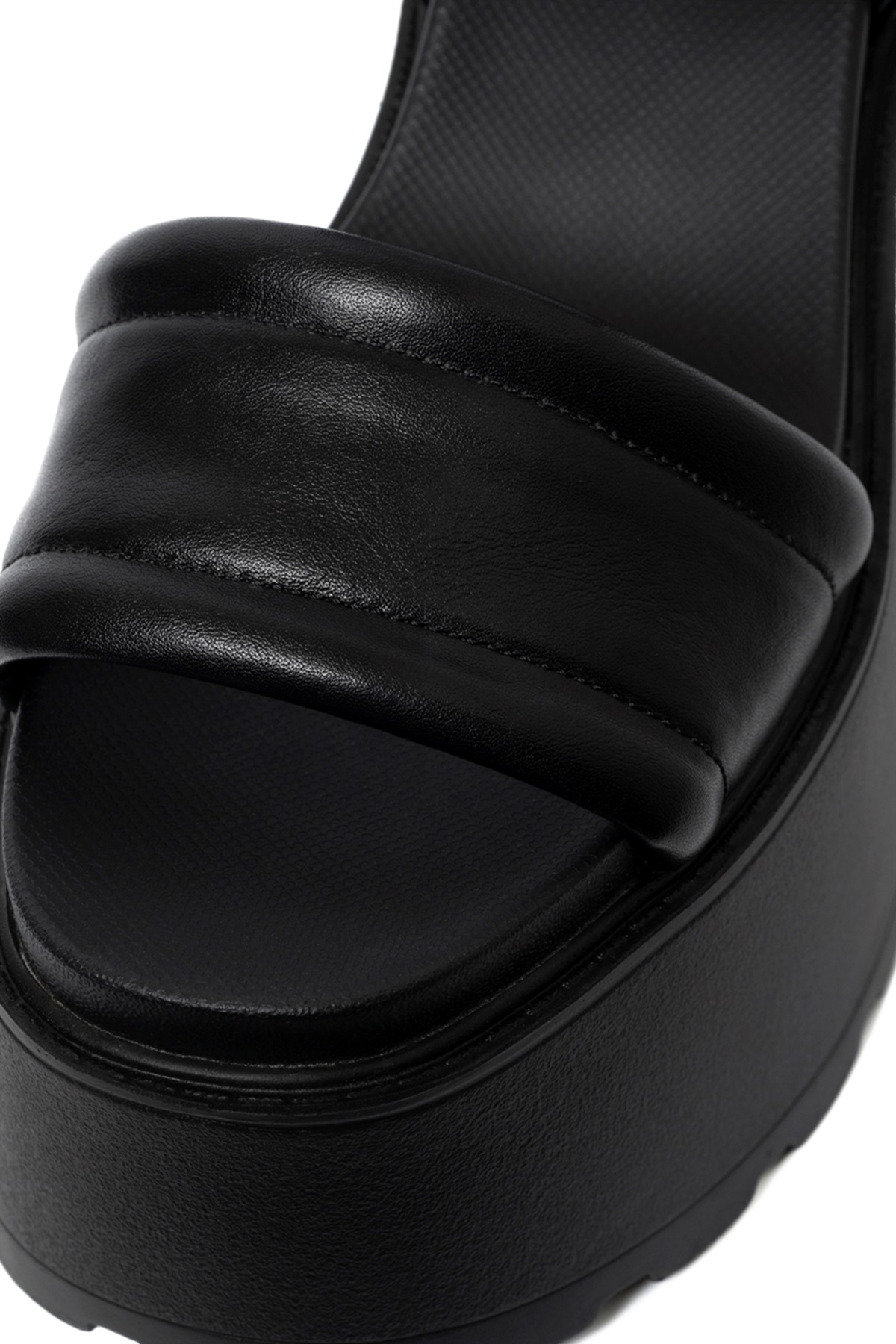 R&E パイピングステッチストラップ厚底モールドソールサンダル