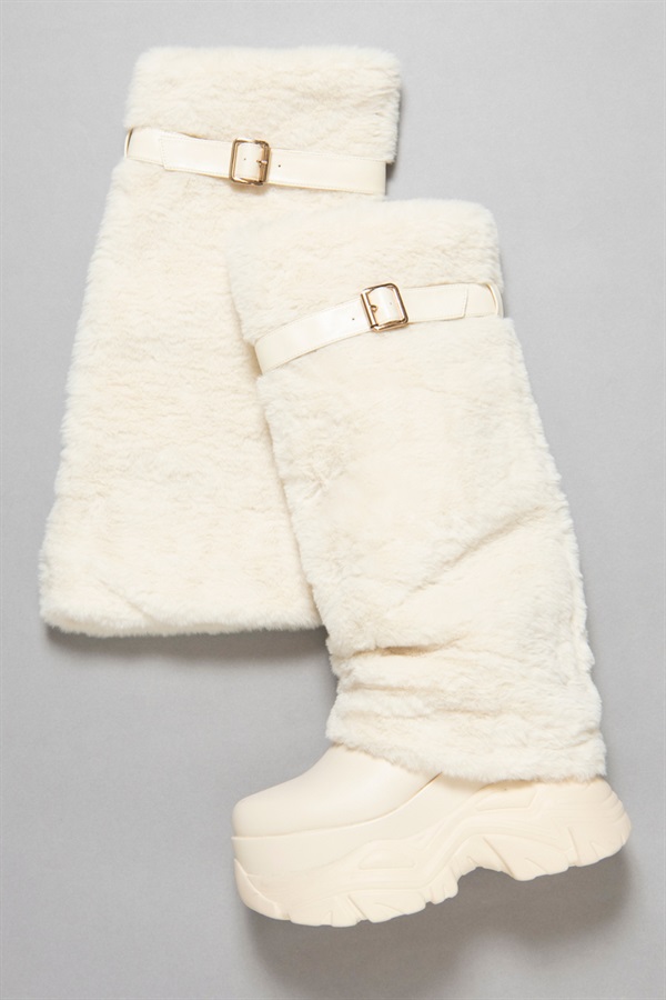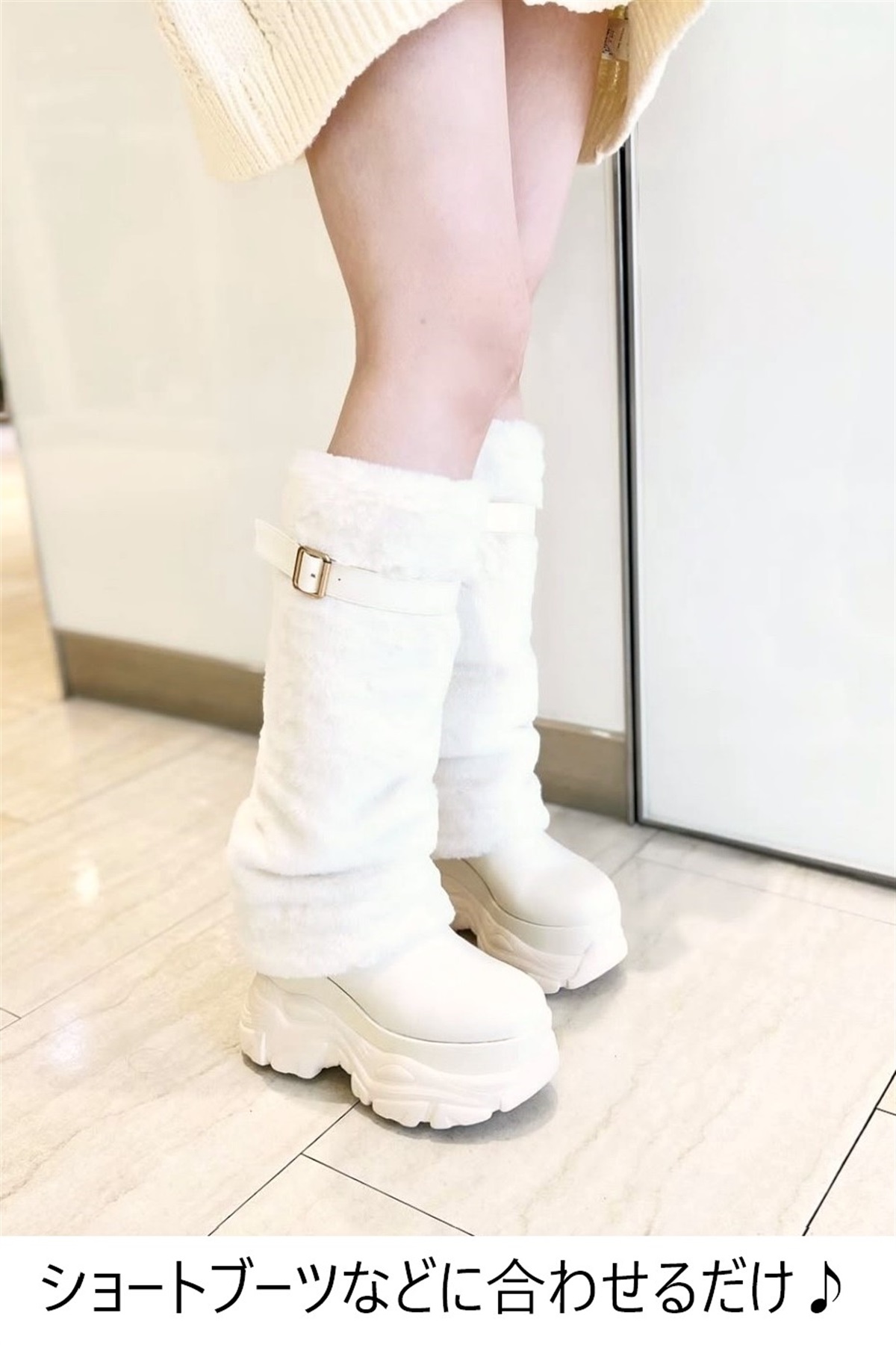 • R&E ベルト付きフェイクファーレッグカバー(アイボリー-FREE)