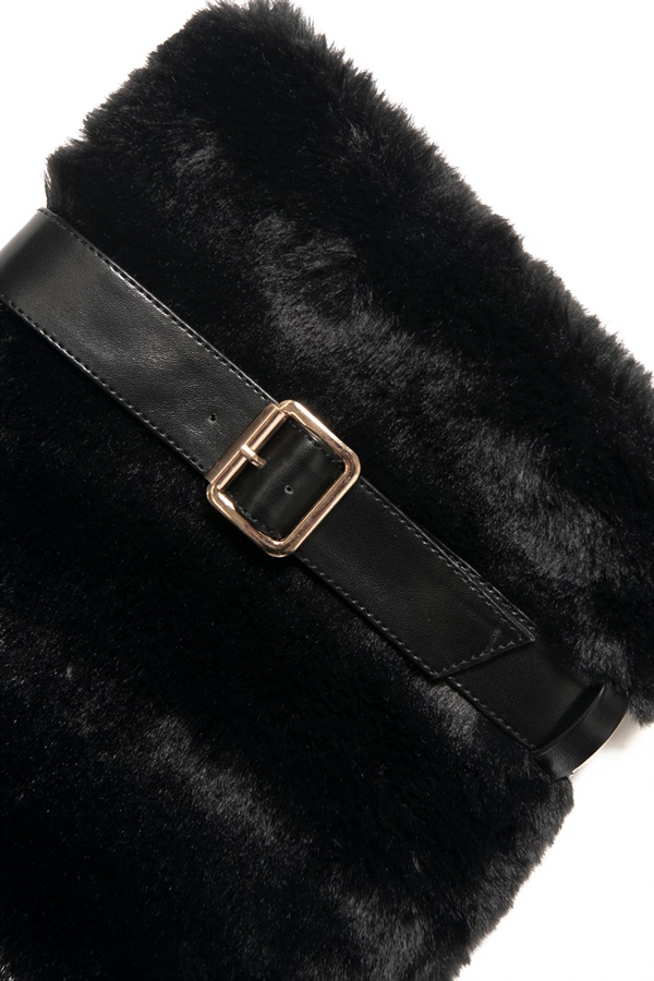 • R&E ベルト付きフェイクファーレッグカバー(ブラック-FREE)
