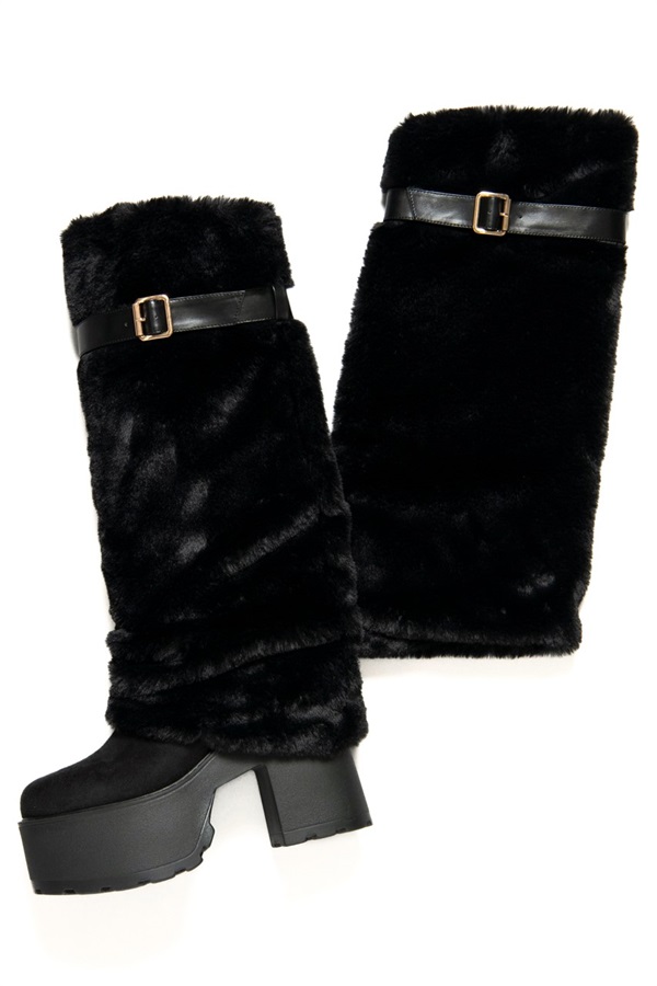 ボリューミーなモコモコのフェイクファーが足元にインパクトをON!!