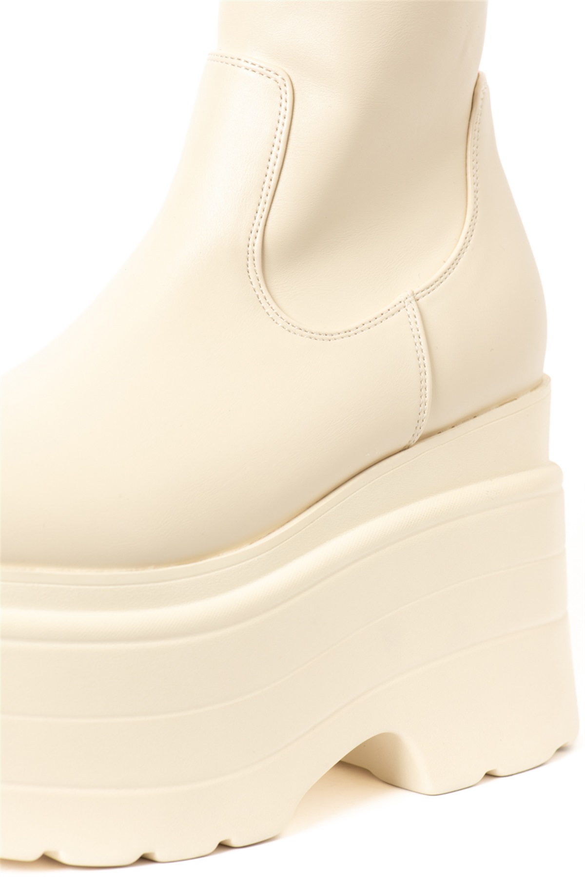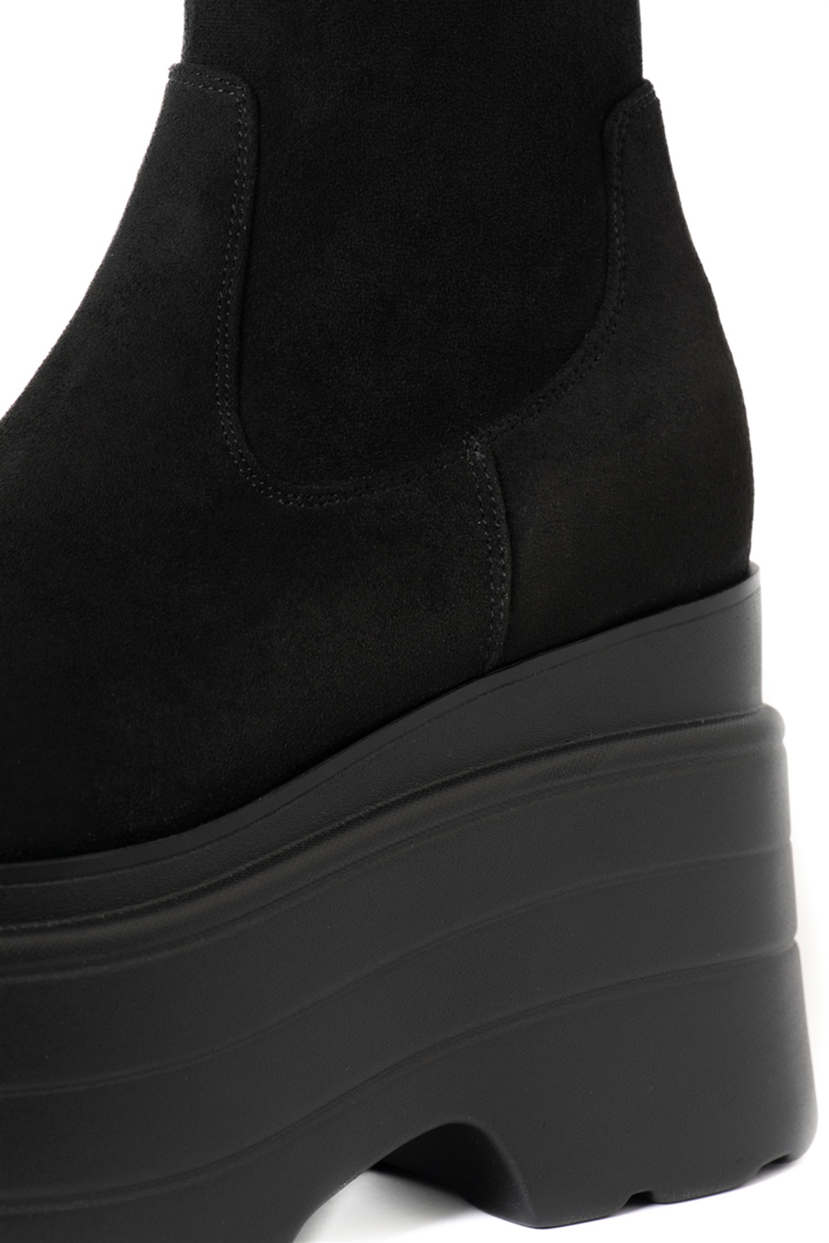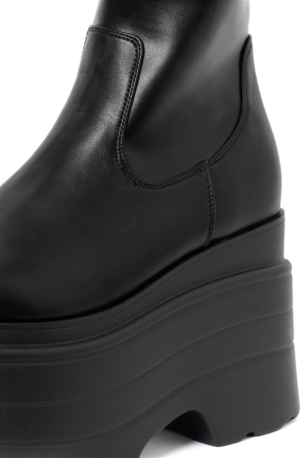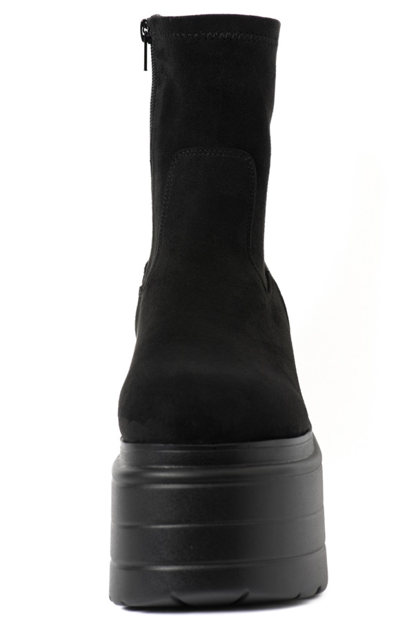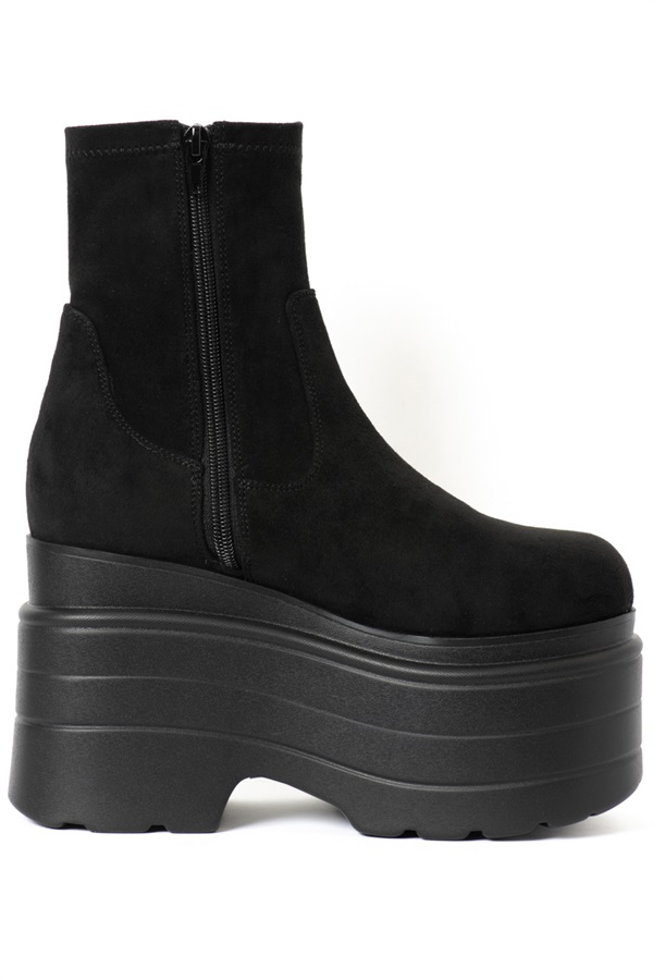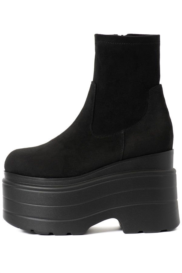 スタイリングの主役級のボリューム感たっぷりなプラットフォームが存在感を醸し出すショートブーツ。