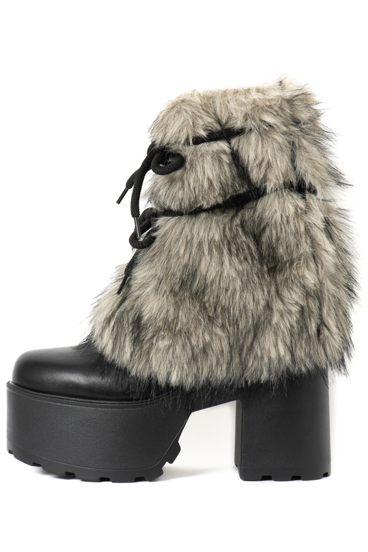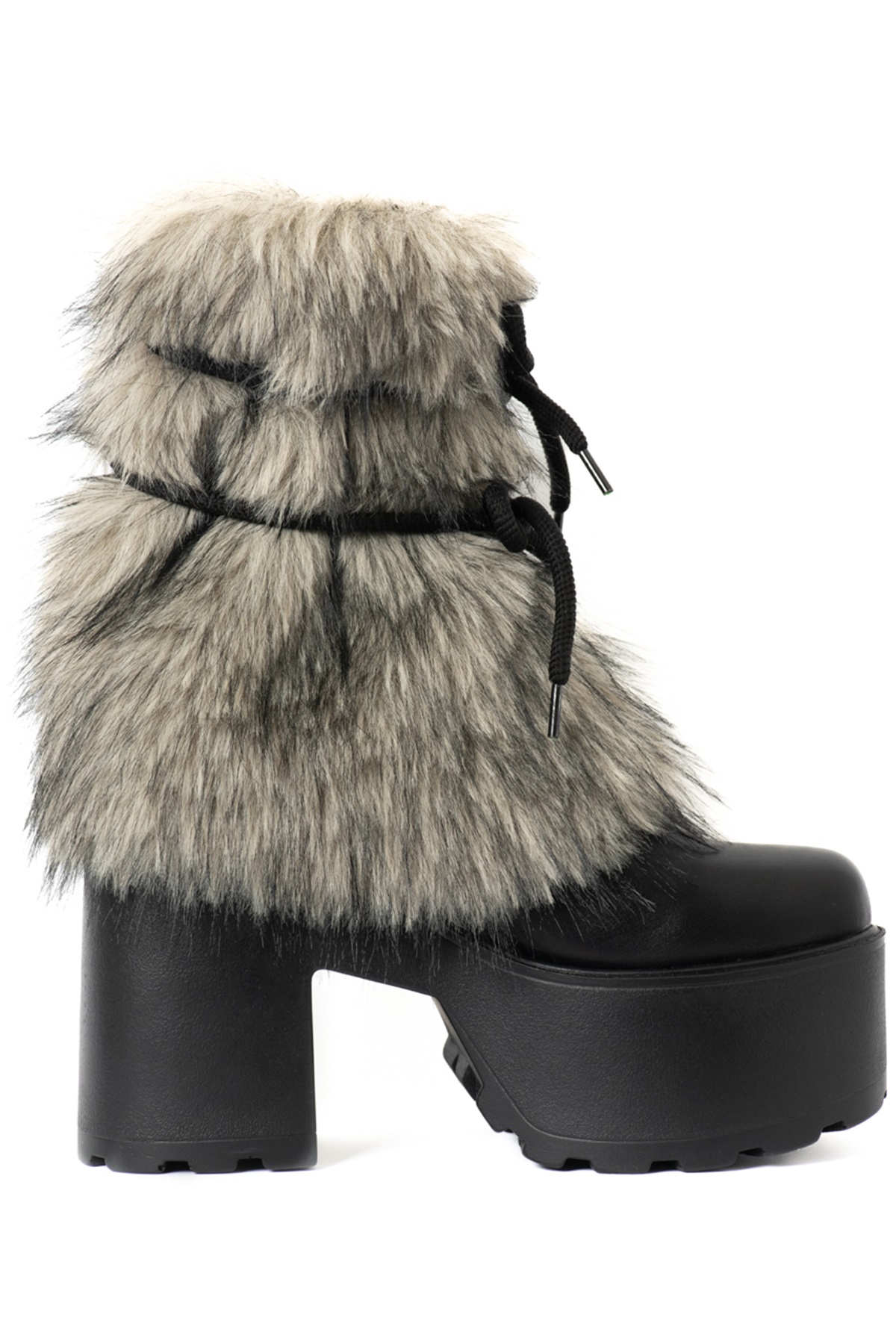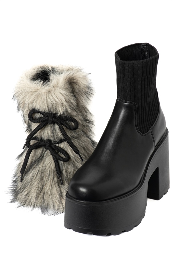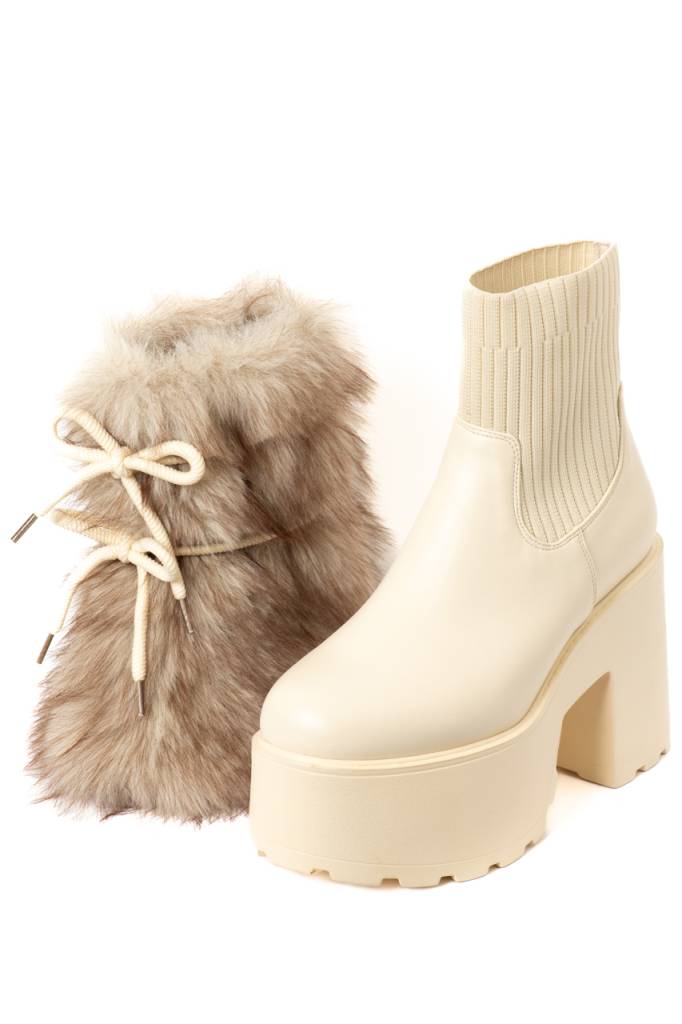 \厚底のソックスブーツとフェイクファーカバーがセットになった2wayブーツ!/