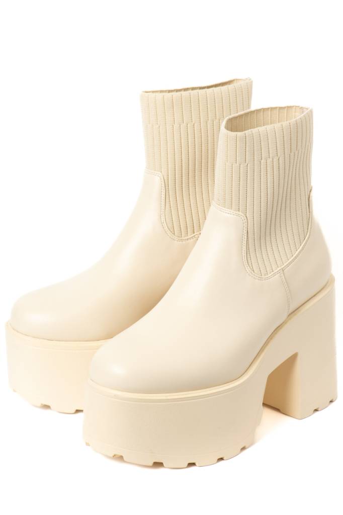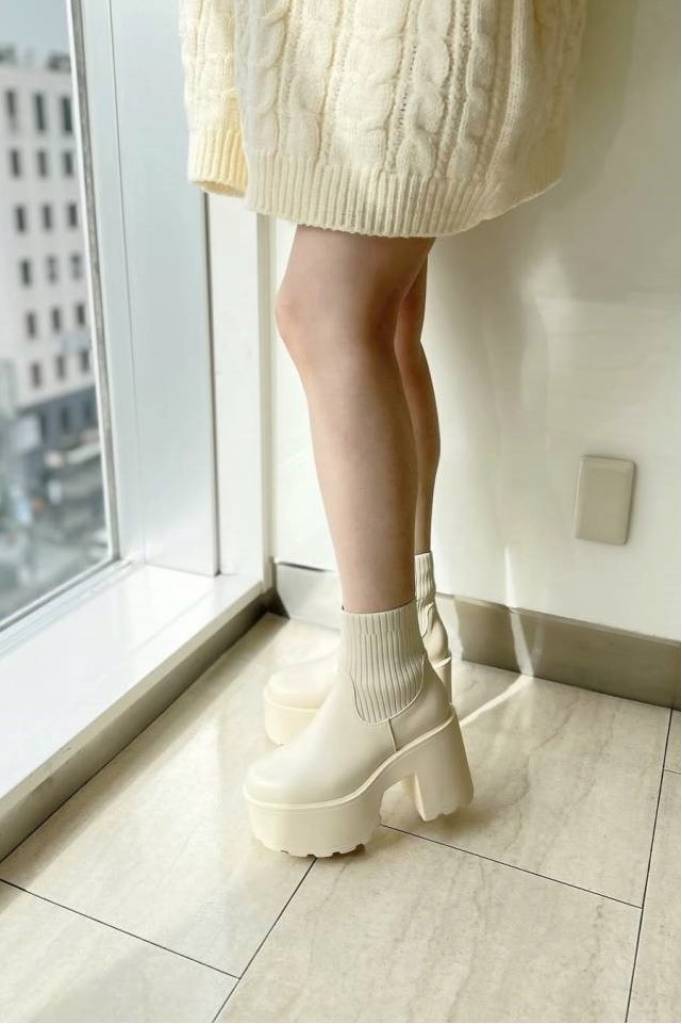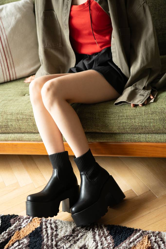 本体のブーツは大人気の「厚底モールドソールショートブーツ(RE71235)」に リブソックスをドッキングしたショートブーツ。