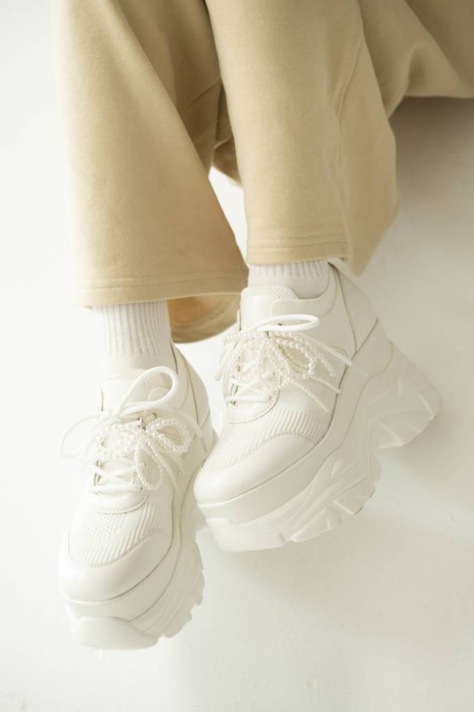 R&E <2way>厚底ラバーソールリボンチャーム付きニットコンビスニーカー