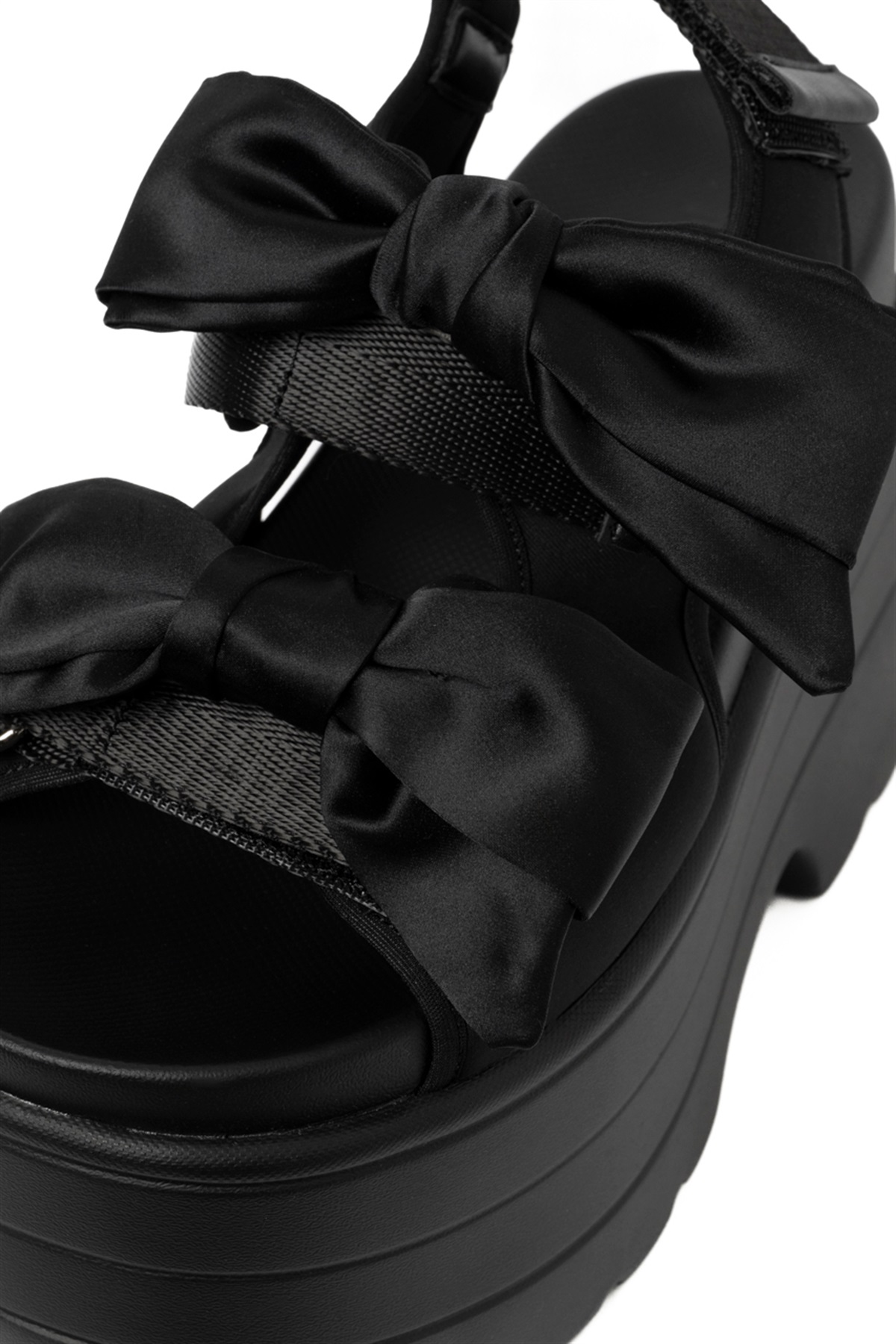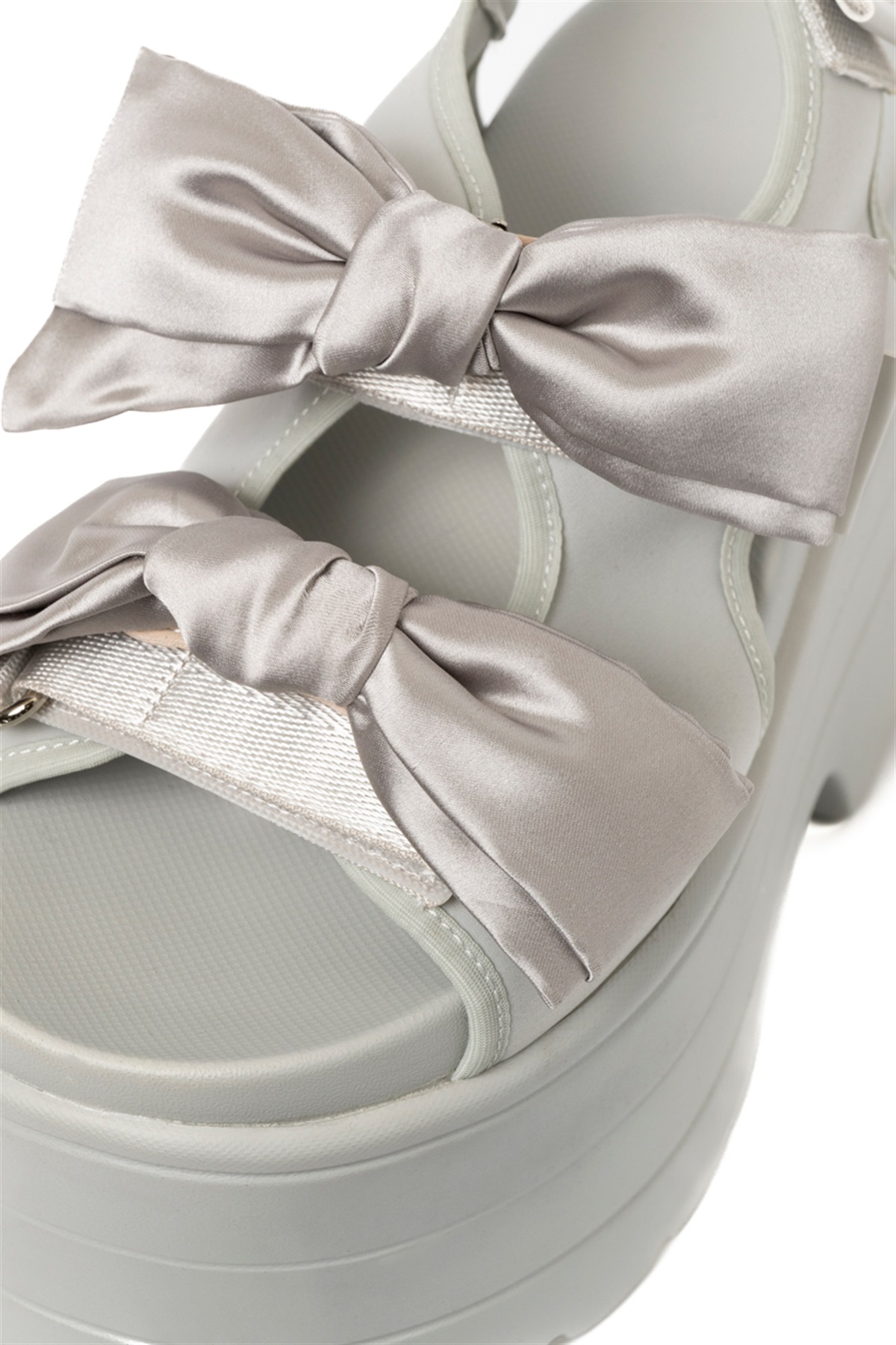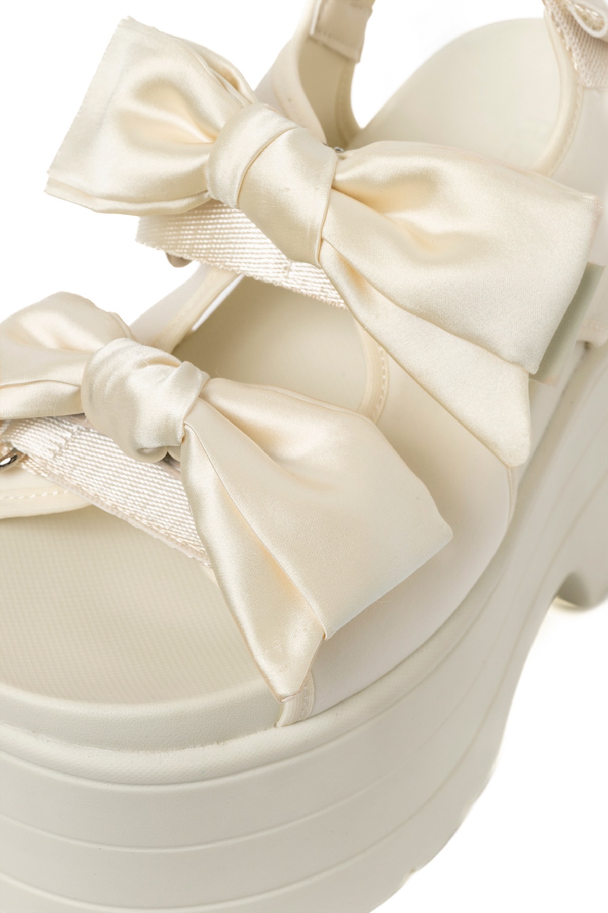 大ぶりのサテン調のリボンが足元のアクセントに!