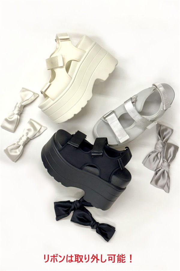 R&E <2way仕様>W/BIGリボンベルクロストラップ厚底サンダル