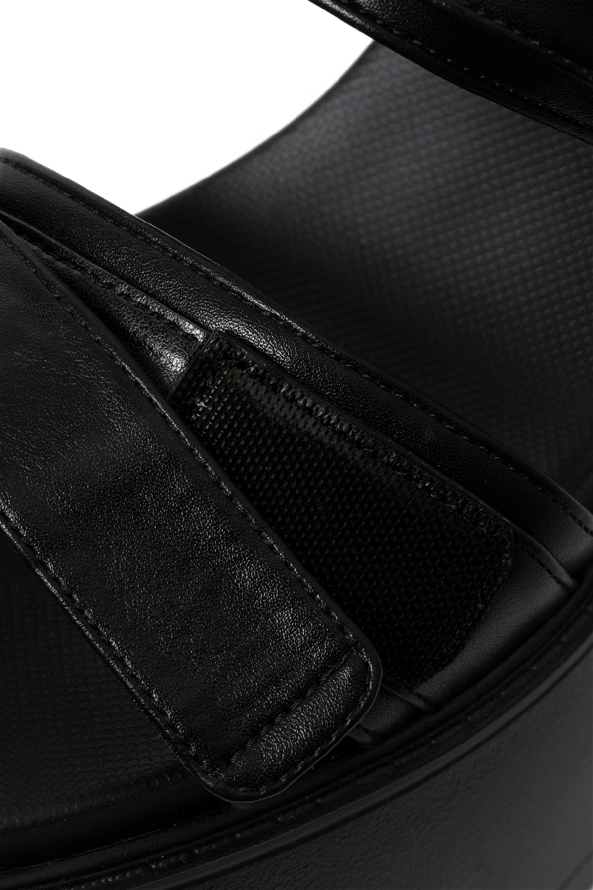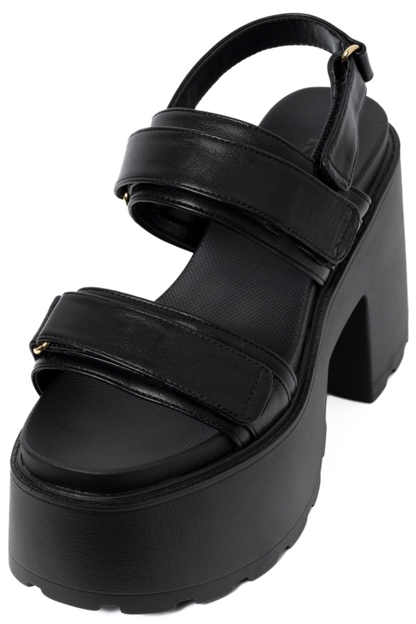 • R&E <2way仕様>W/BIGリボンベルト厚底モールドソールサンダル(ブラック-S)