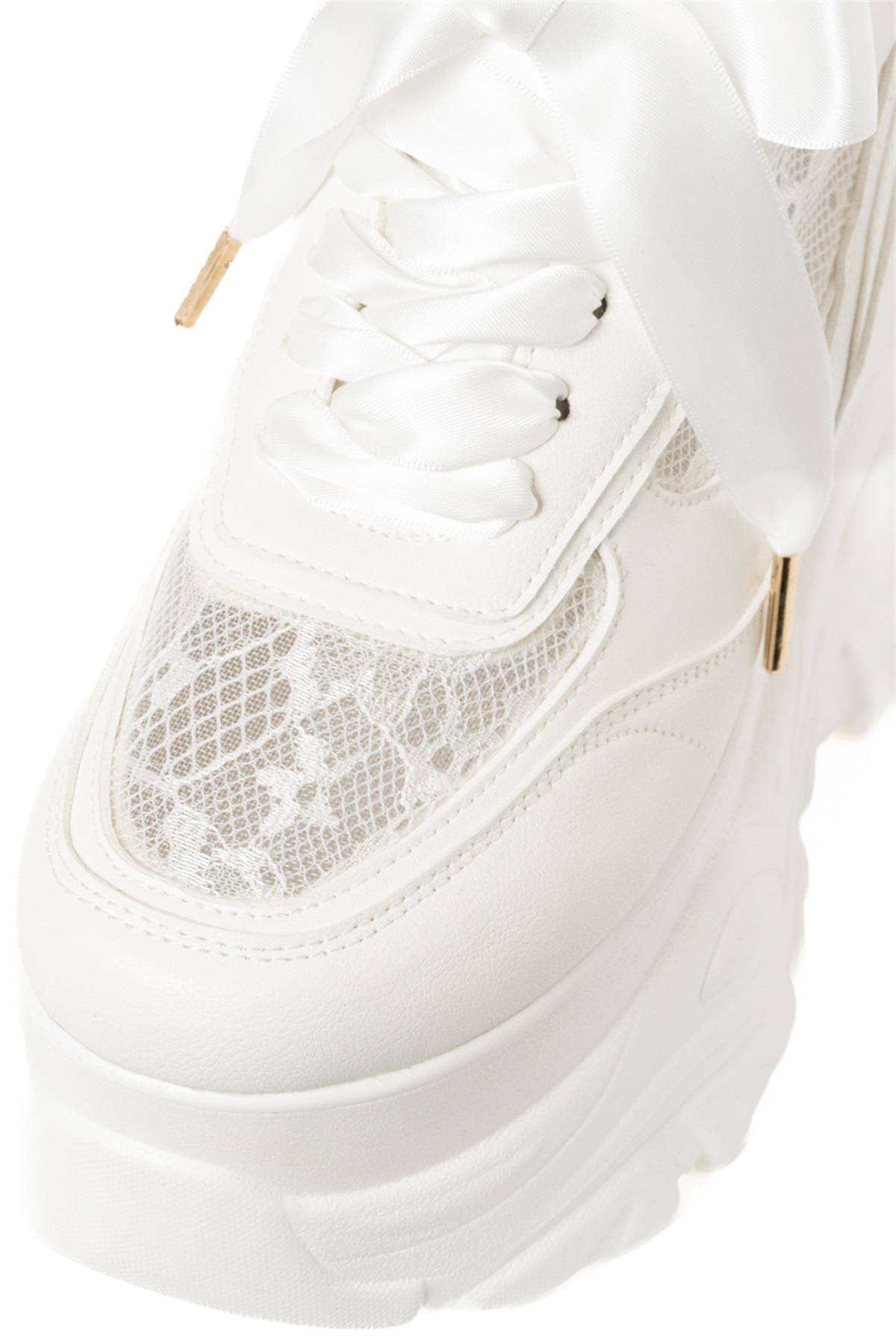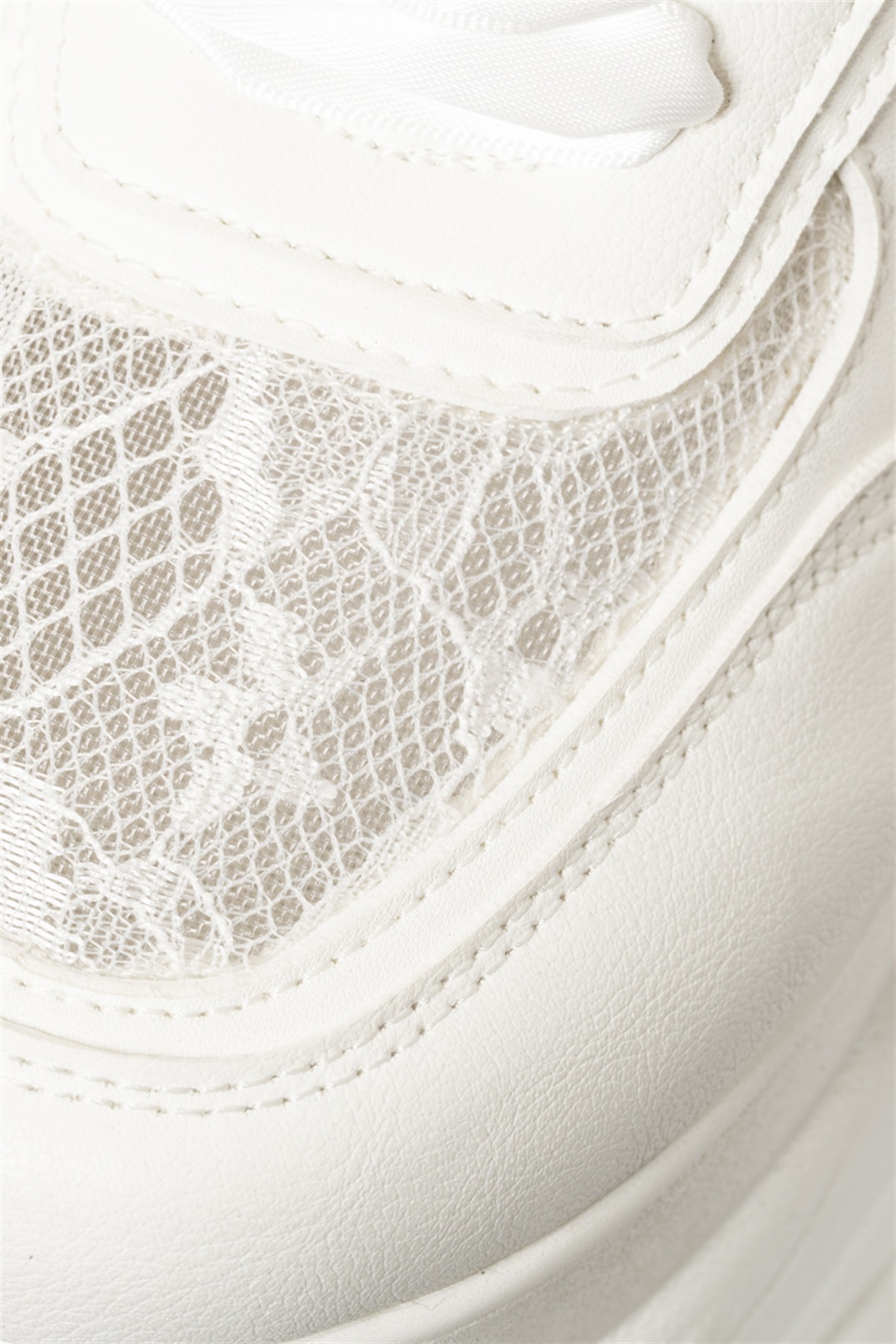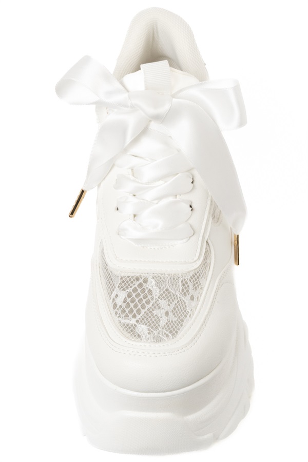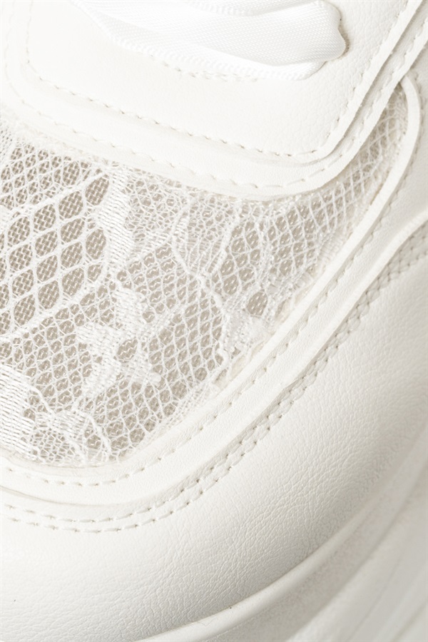 カジュアルなスニーカーだけど、アッパーにはレース素材を使用しフェミニンな印象をプラス。
