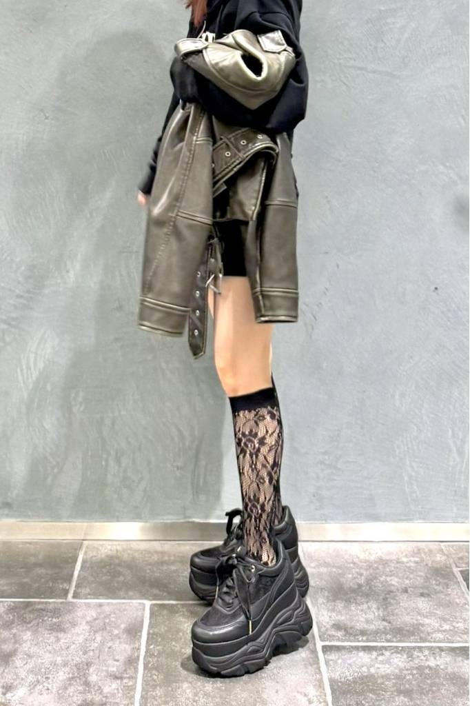 透け感もあるので、ボリューミーな厚底だけど軽やかなムードに。