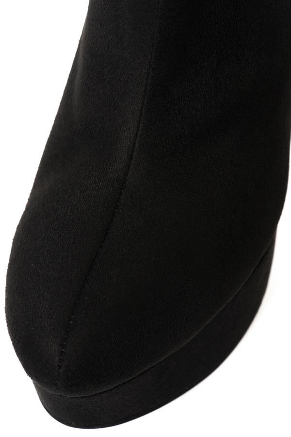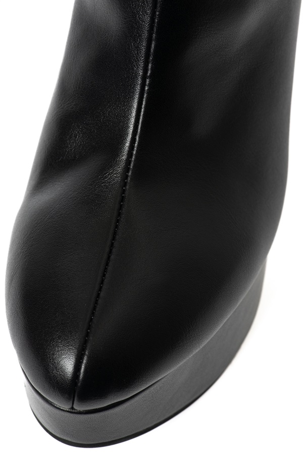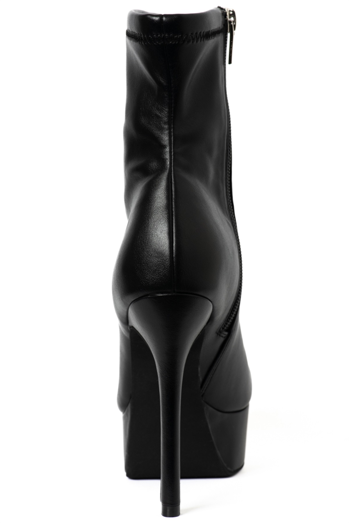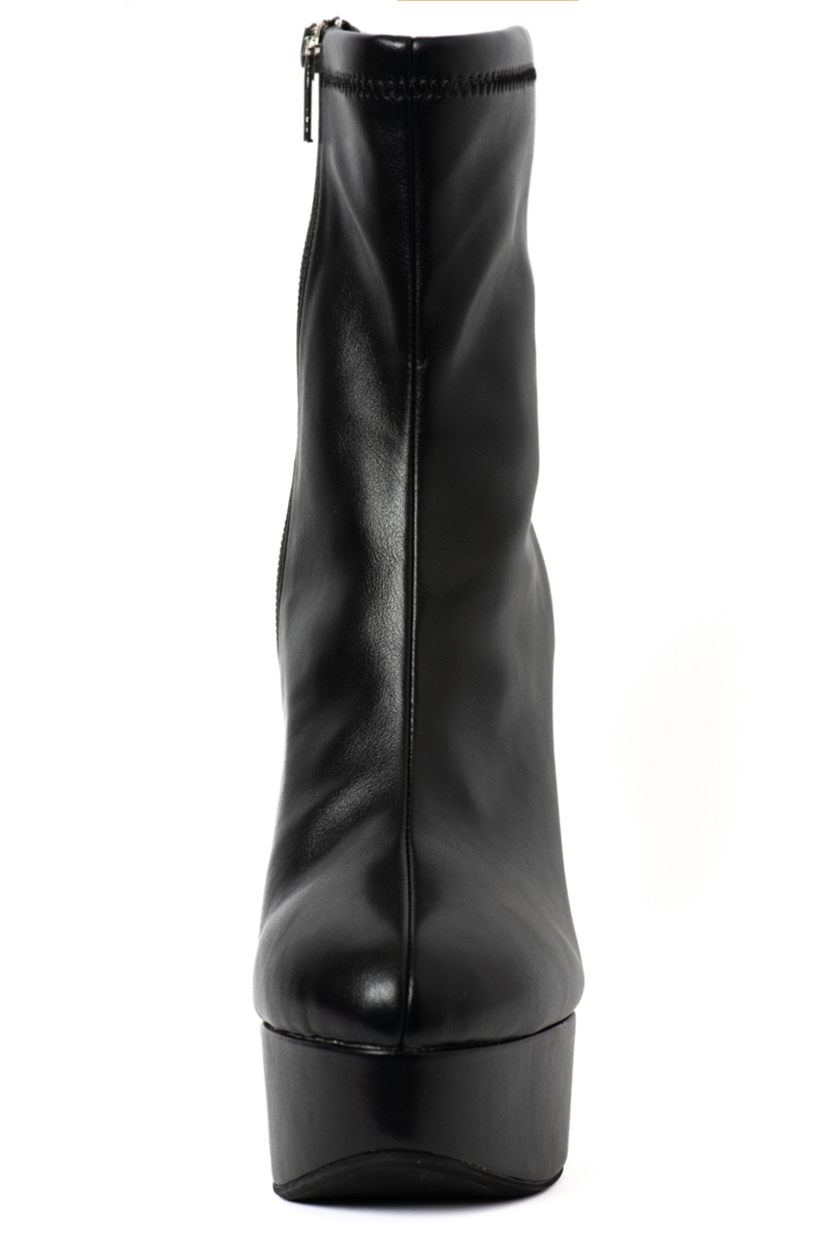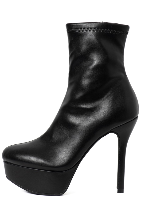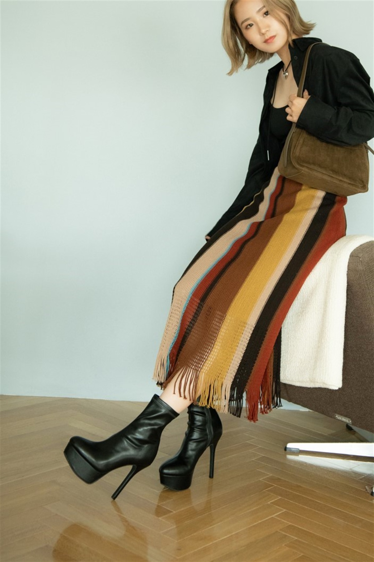 スラリと伸びた高めのヒールに、ボリューミーなストームでスタイルアップ効果バツグンのショートブーツ。