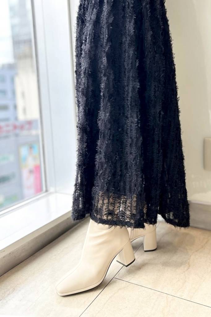 シャープなシルエットのちょっぴり大人なスクエアトゥのショートブーツ。