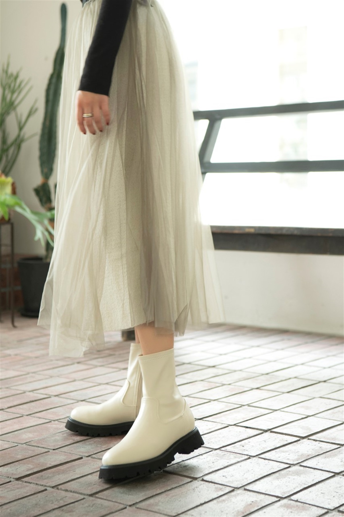 トレンド感漂う厚底ソールのシンプルなショートブーツ。